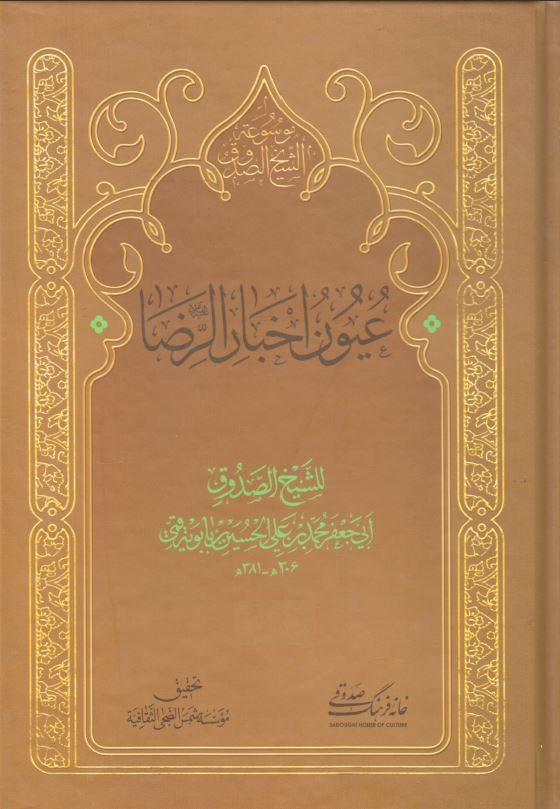 عيون أخبار الرضا عليهالسلام (تصحیح لاجوردی)، تأليف ابوجعفر محمد بن على بن الحسين بن بابويه قمى، معروف به شيخ صدوق، مفصلترين و معتبرترين كتاب در مورد جوانب
