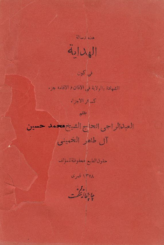 کتاب حاضر در خصوص شهادت به ولایت در اذان و اقامه و به زبان عربی نگاشته شده است. ابتدا نویسنده پیشینه تاریخی بحث را مطرح