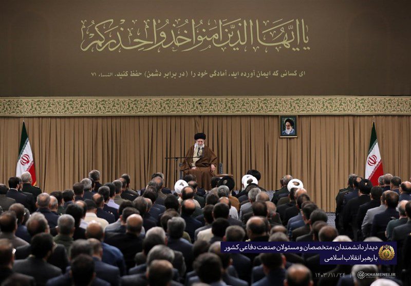 حضرت آیتالله خامنهای با اشاره به دورانی که قلدرهای جهانی اقلام دفاعی مورد نیاز کشور را حتی به چند برابر قیمت به ایران نمیفروختند، گفتند: اکنون همان زورگویان به ایران میگویند تجهیزات نظامی نفروش و میان آن «نمیفروشیم» تا این «نفروشید»، فاصله بسیار زیادی است که به برکت تلاشهای دانشمندان و ذهنهای ورزیده متخصصان جوان، پر شده است.